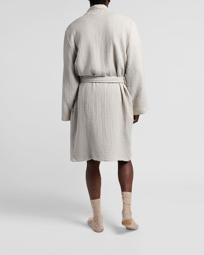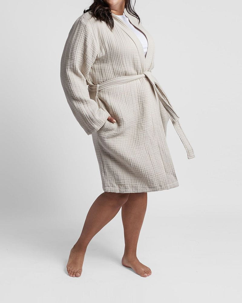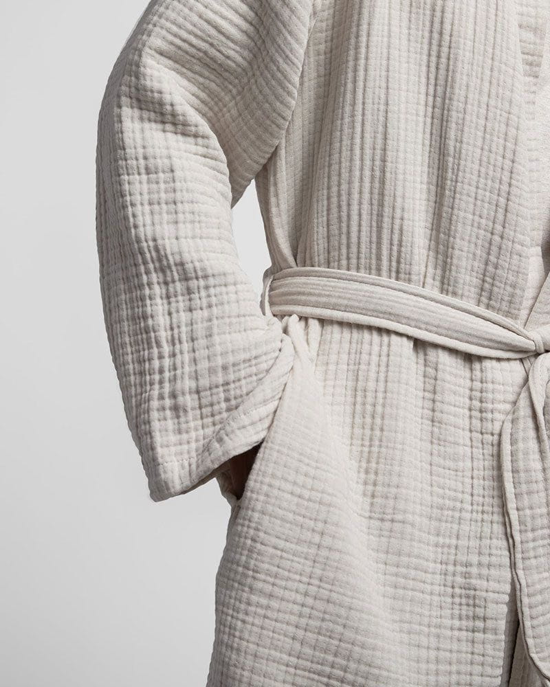 Lounge in effortless comfort with this luxuriously soft robe, crafted from premium 4-ply gauze cotton. Lightweight yet cozy, it’s designed with a relaxed fit, a secure waist tie, and hidden side pockets—perfect for everyday lounging or post-shower comfort.
