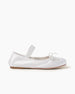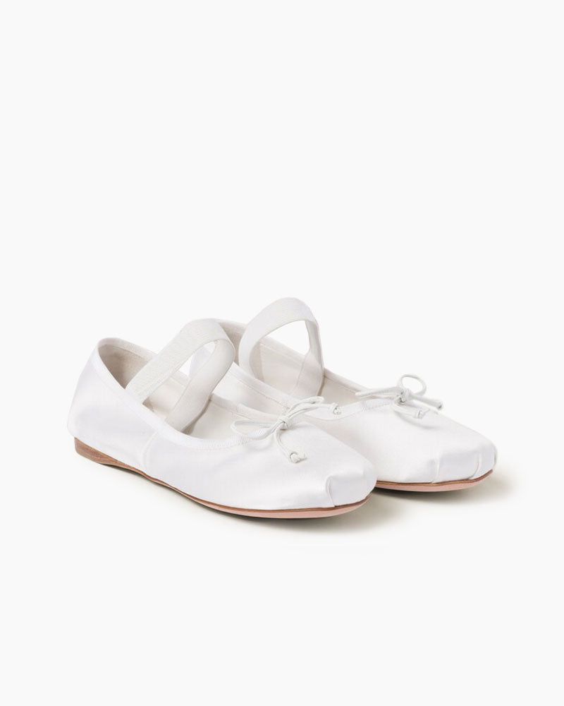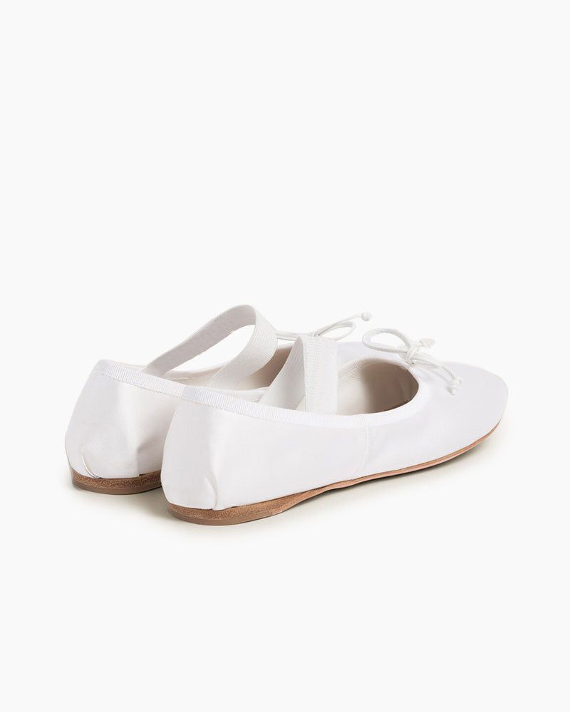 An iconic ballet flat silhouette reimagined in satin, featuring feminine details such as a delicate bow and a logo-accented elastic band. First seen in a Fall/Winter runway collection, this design blends timeless charm with modern ease.