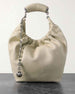 Design: Ruched top with a curved handle.