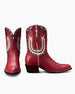 These boots offer a fresh perspective on classic Western style, featuring a shorter shaft for comfort and convenience, and crafted with exquisite leatherwork. Bold inlay patterns add depth and a vintage feel, while the retro collar cutouts and signature details create a true cowgirl look.
