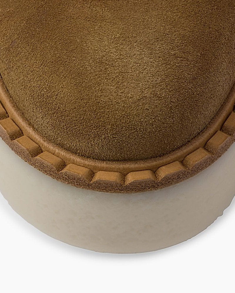 Cozy yet contemporary, these suede platform slippers combine a clean, minimalist upper with plush shearling lining for all-day warmth. The chunky rubber flatform sole adds subtle height and a modern edge, making them ideal for relaxed days in or effortless off-duty looks.