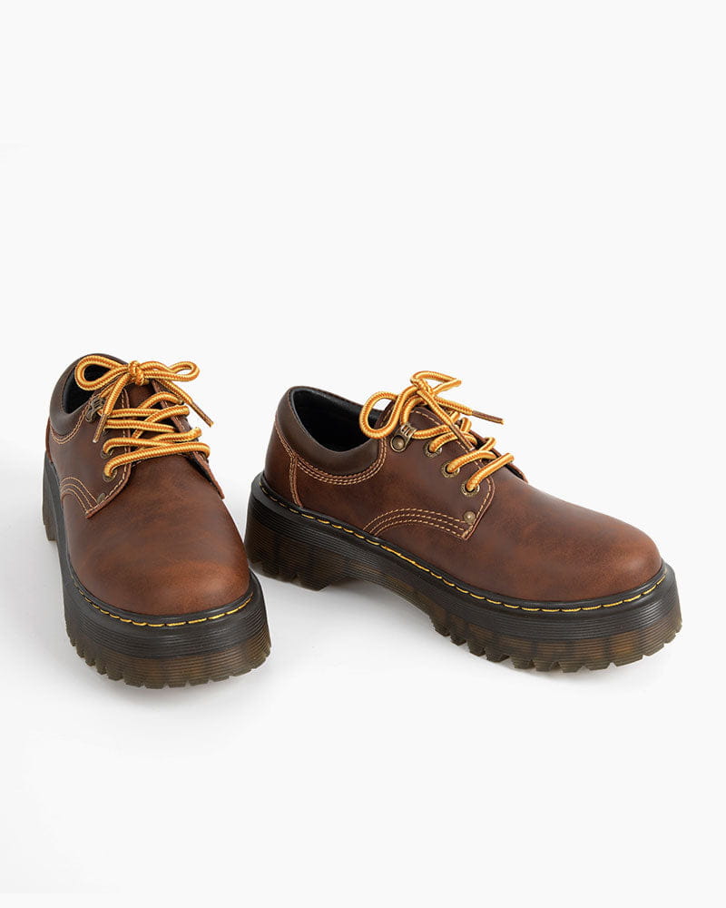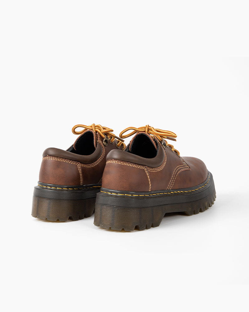 These platform lace-up shoes are designed for a bold look with a stress-free feel, remixing a classic silhouette with rugged materials. Standing tall on a signature stacked sole, this footwear combines a durable, worn-in aesthetic with intricate detailing, making it a reliable choice for those seeking a mix of height and heritage-inspired style.