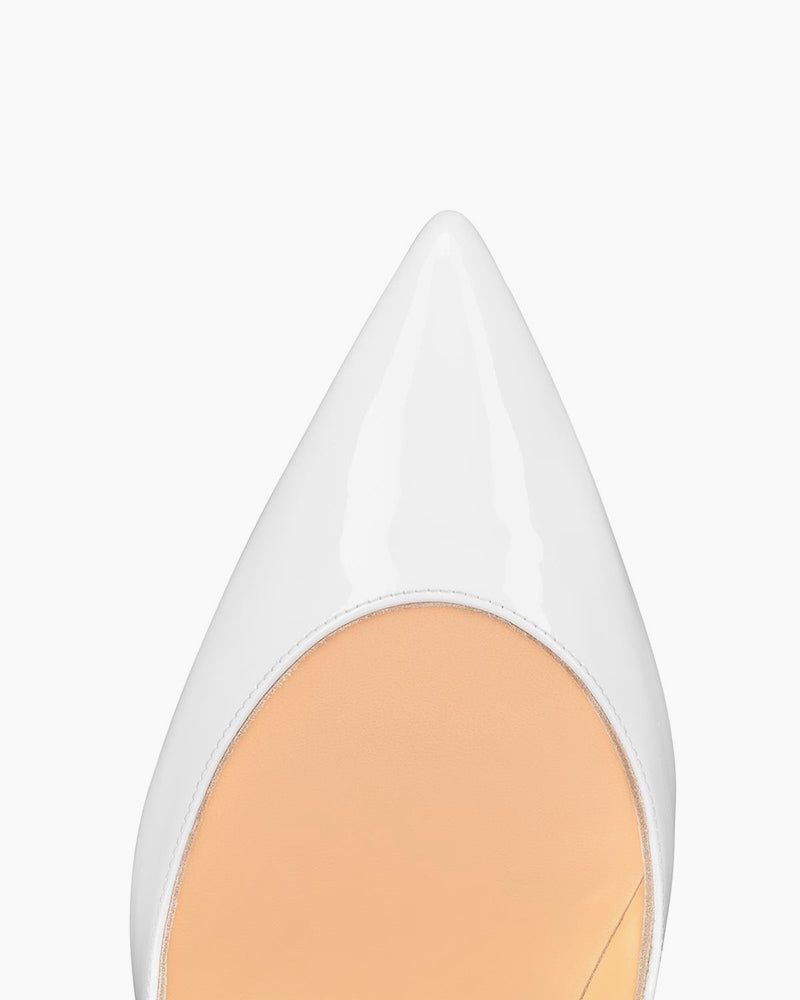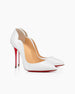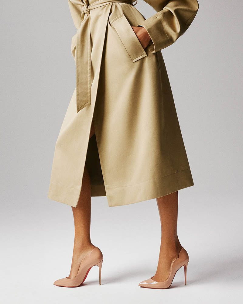 An iconic stiletto defined by sleek lines and timeless appeal. Featuring a deep décolleté, pronounced arch, and hand-stitched scalloped edges that offer subtle glimpses of the foot, these pumps embody bold elegance. Crafted in glossy black patent leather, they’re elevated on a 100 mm heel with a signature red sole for a striking finish.