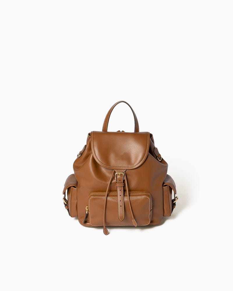 This genuine leather backpack reimagines classic school gear with a sophisticated, artisanal touch. Evoking a sense of nostalgia, its structured yet relaxed silhouette features a practical multi-pocket design. The rich texture of the leather is complemented by gold-tone hardware and visible topstitching, creating a versatile accessory that perfectly balances utility with timeless style.