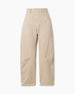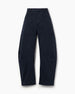 A contemporary update to casual tailoring, these barrel leg pants feature a mid-rise waist, relaxed fit, and uniquely curved silhouette. Designed with seam detailing at the knees and gusseted construction, they balance comfort with directional style.