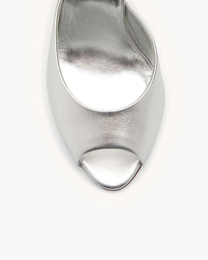 A refined statement of elegance, these lace-up pumps are inspired by ballet slippers, crafted in soft blush crepe satin with a modern square toe. Finished with ankle-wrap ribbons and set on a slender stiletto heel, they blend grace with allure.