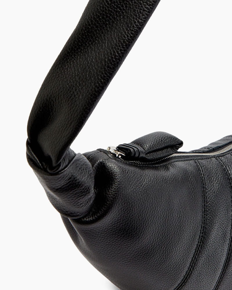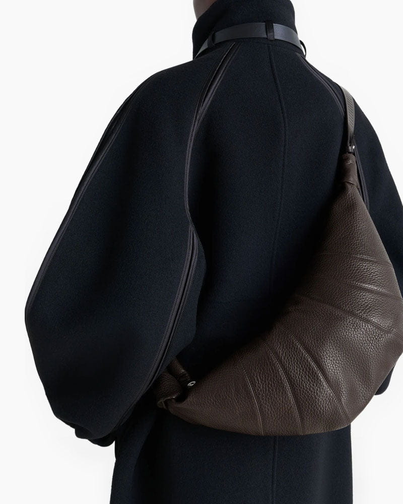 A compact shoulder bag with a distinctly curved silhouette, designed for effortless everyday wear. Its soft structure, knotted detailing, and minimal shape give it a sculptural look that pairs seamlessly with both casual and elevated outfits.