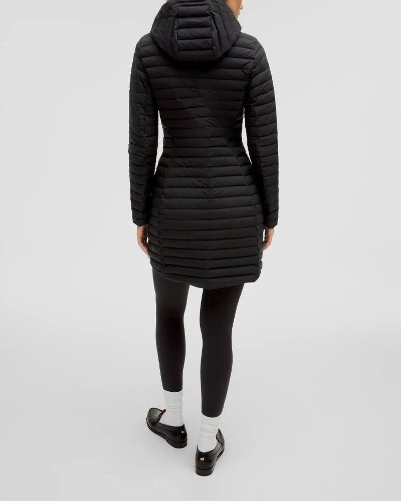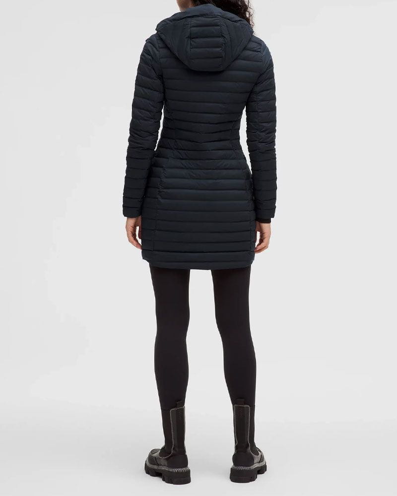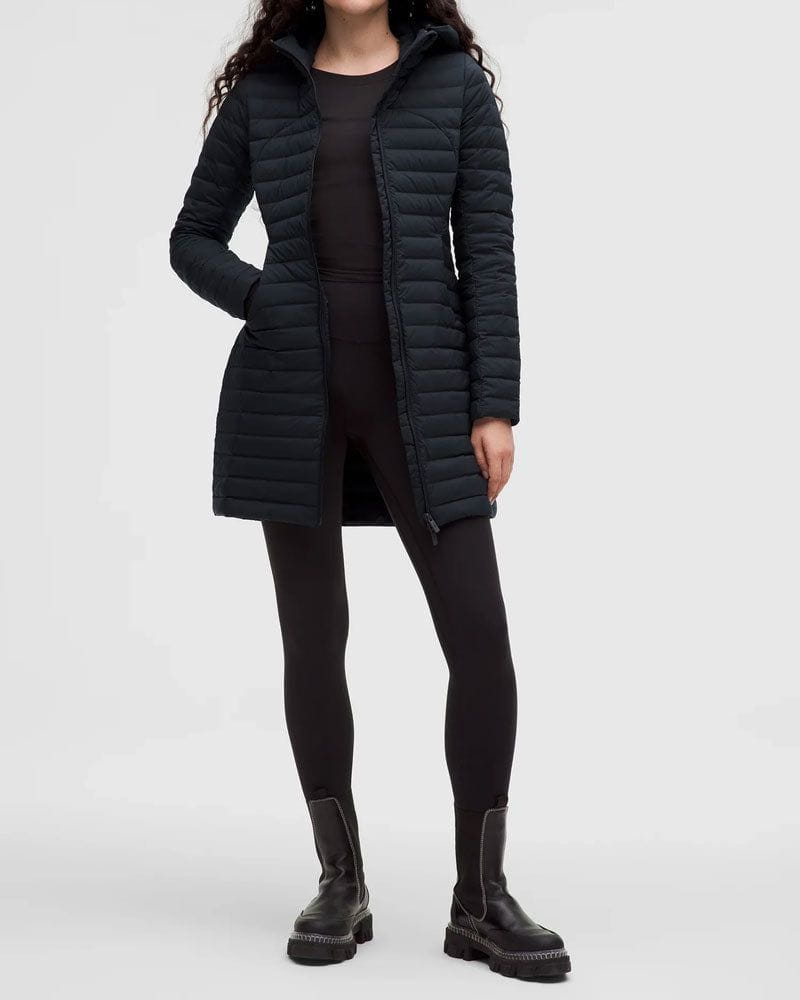 Designed for casual wear, this slim-fit down jacket combines water-resistant performance with lightweight warmth. With its thigh-length cut, removable hood, and packable stuff sack, it’s built for versatility in unpredictable weather.