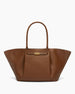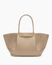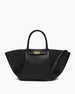 The bag is a modern yet timeless tote designed for the professional on the go, offering a spacious interior that transitions effortlessly from day to night. Inspired by city life, this silhouette is ethically handcrafted from soft, strong, and durable genuine leather and features a distinctive belted detail with a gold-tone lock. Its unique triangular fold design and versatile handles allow it to be worn over the shoulder or carried in the crook of the arm.