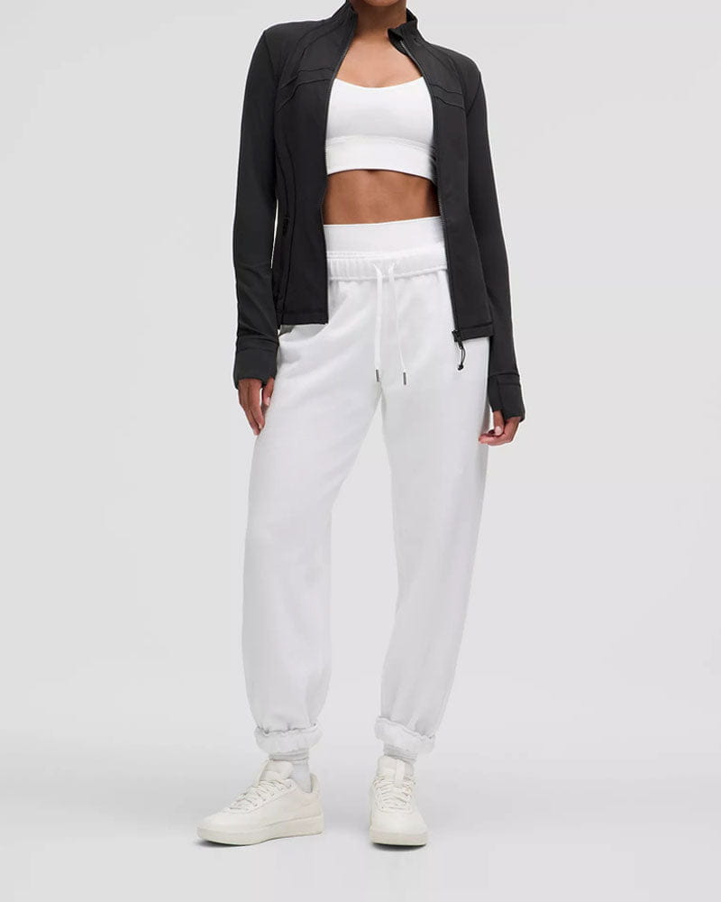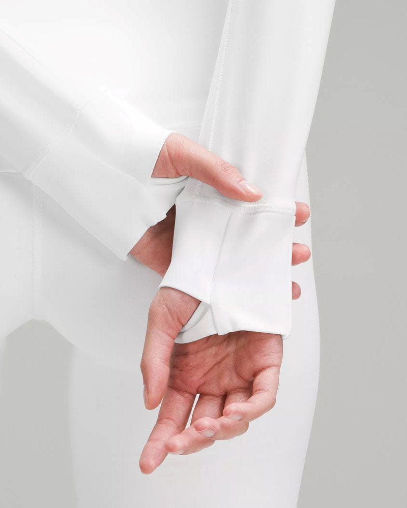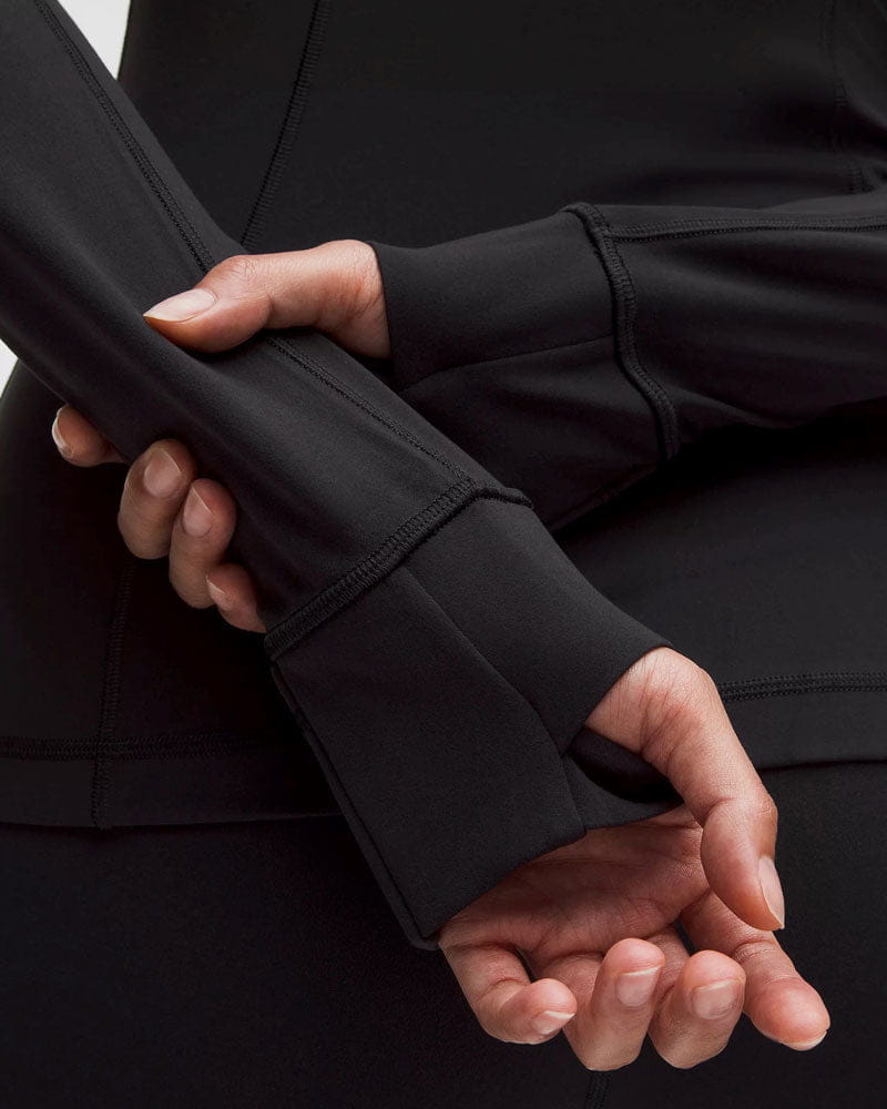 Features: • Sweat-wicking and breathable for all-day freshness • Four-way stretch for unrestricted movement • Zippered side pockets to secure essentials • Thumbholes and cuff extensions keep sleeves in place • Locker loop for easy hanging • Zipper garage prevents skin irritation • Elastic zipper pull doubles as an emergency hair tie