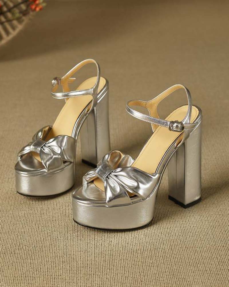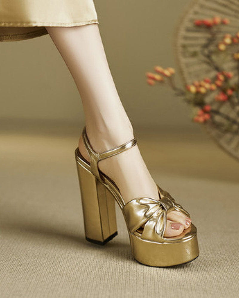 Elegant and confident, these platform sandals redefine evening glamour through sculptural proportions and a touch of vintage-inspired allure. Featuring a bold block heel and a soft satin bow accent, the design balances statement height with feminine grace—made for those who move effortlessly between sophistication and celebration.