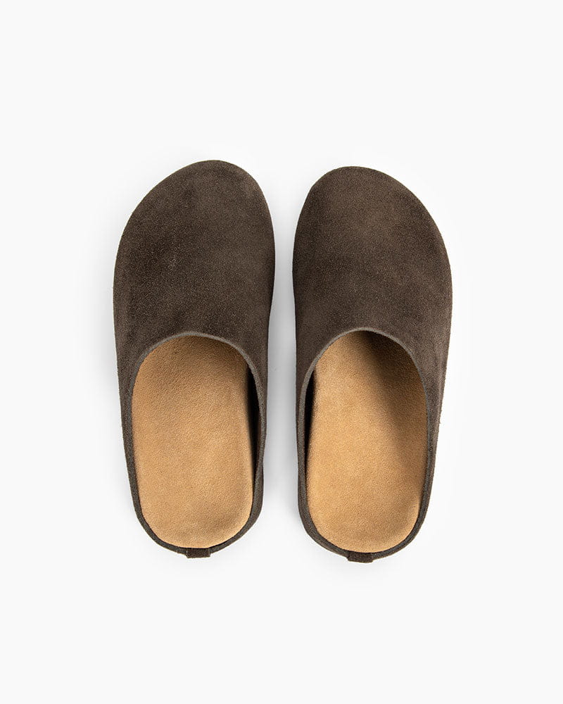Effortlessly minimal, these suede mules embody quiet sophistication. With their smooth rounded toe and clean slip-on design, they capture a balance of relaxed luxury and understated refinement—perfect for modern dressing.