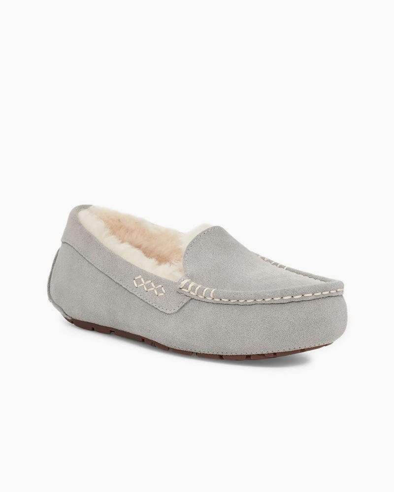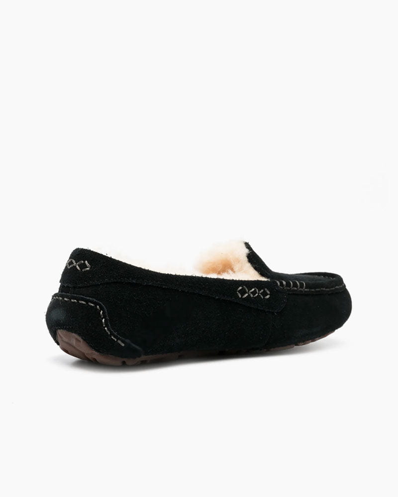 These suede loafers offer a sleek and stylish design with plush shearling lining for ultimate comfort. The flat rubber sole provides durability and traction, making them a versatile choice for everyday wear.