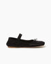 These ballerinas represent an iconic and distinctive style, celebrated as the original design made of luxurious satin. The silhouette is defined by very feminine details, such as a delicate bow at the toe, juxtaposed with a sporty elastic band featuring a knit logo label across the instep. Crafted from a silk viscose blend, the shoe is finished with a leather sole and a rubber heel layer for durability, along with a comfortable leather-covered insole.
