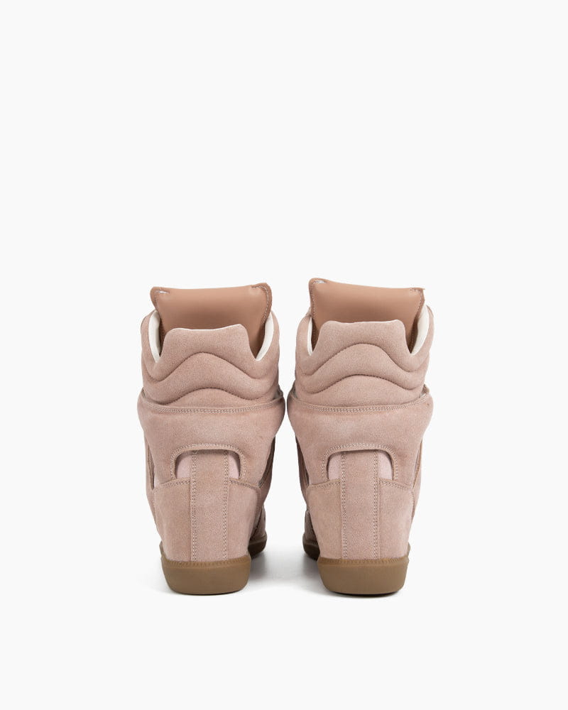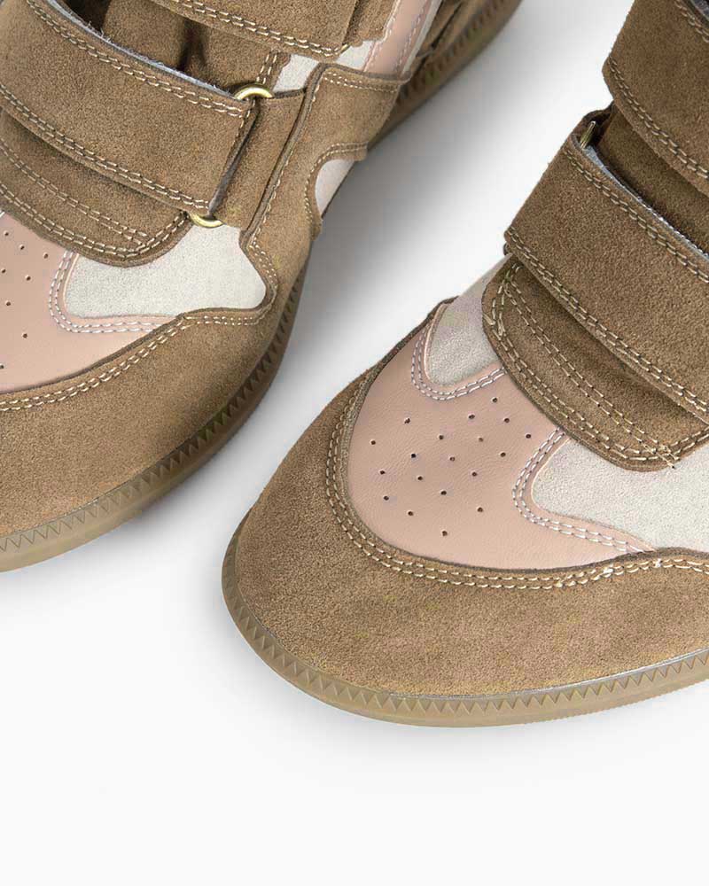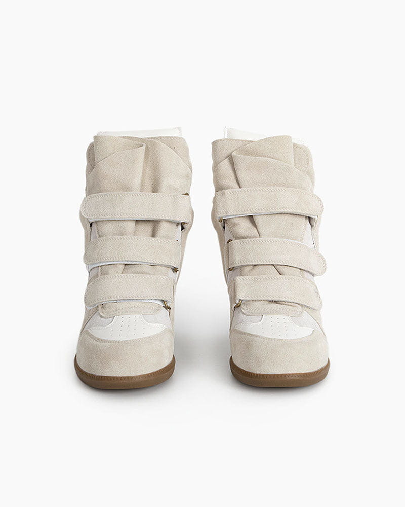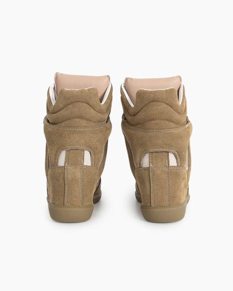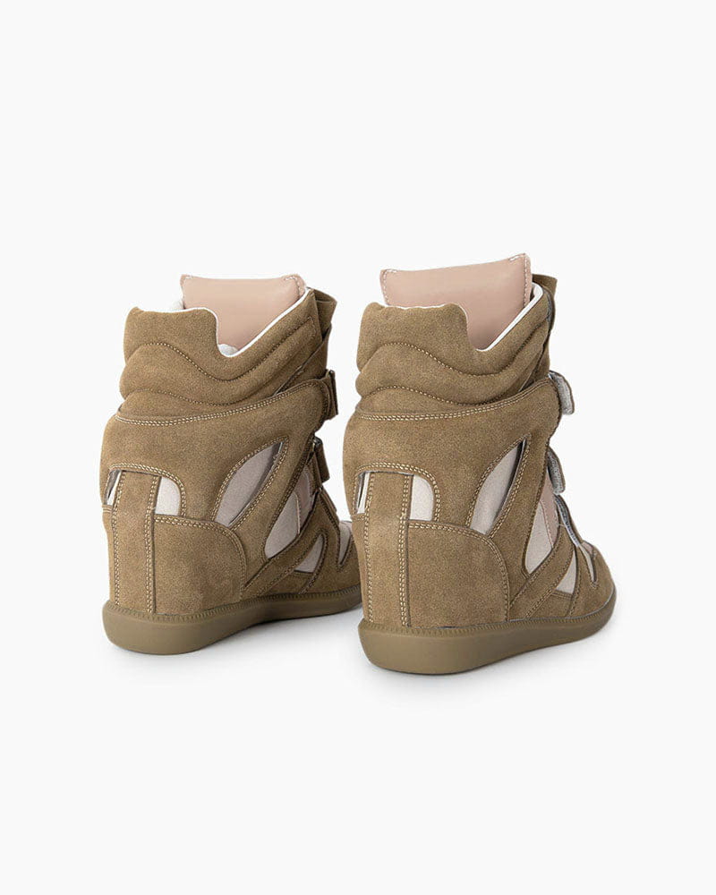 A refined take on classic high-top sneakers. Crafted from soft suede and smooth leather, this design blends sporty functionality with an elevated aesthetic. The concealed wedge heel discreetly adds 5.5 cm of height while maintaining all-day comfort, making it a versatile choice for effortless everyday wear.