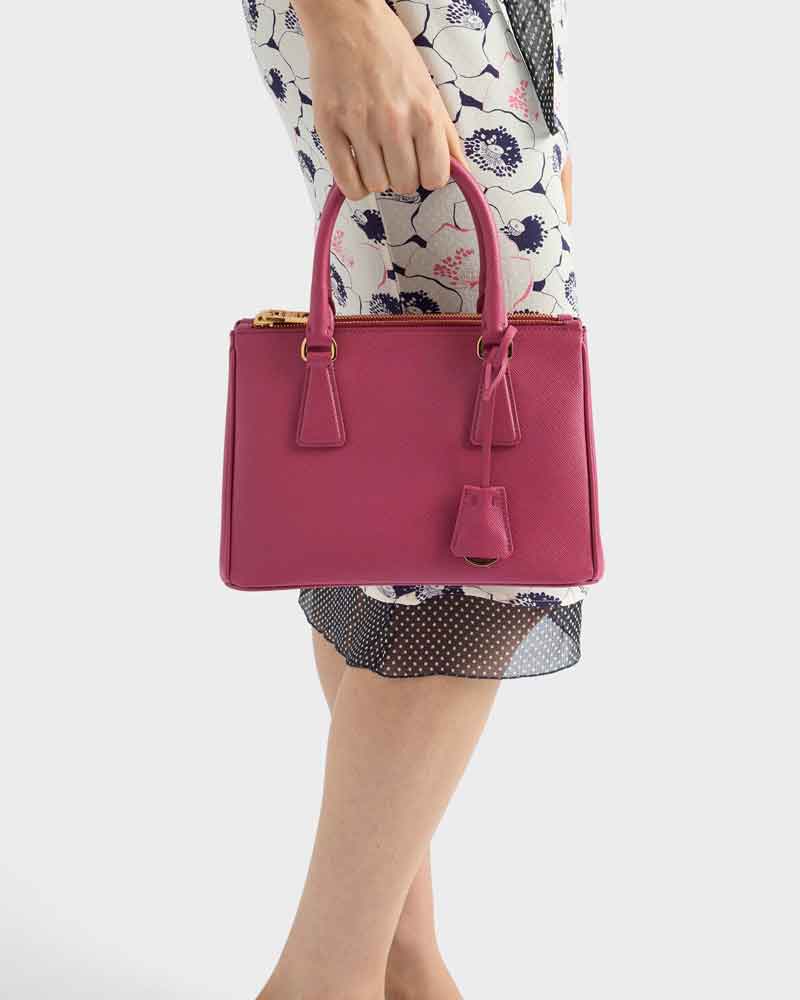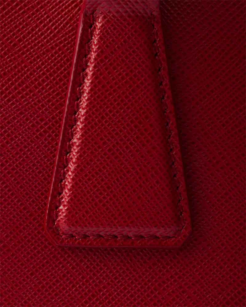 Design: accented with a leather triangle featuring metal lettering on the front and equipped with protective purse feet.