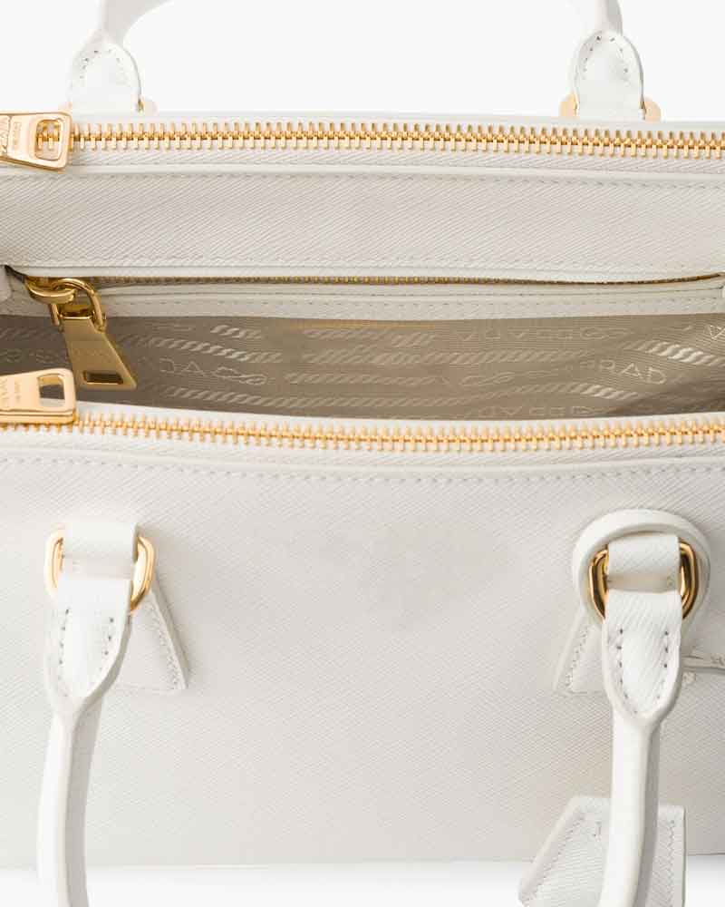 Storage: Features external zipper pockets and a logo-print nylon lined interior with two pockets, including one with a zipper.