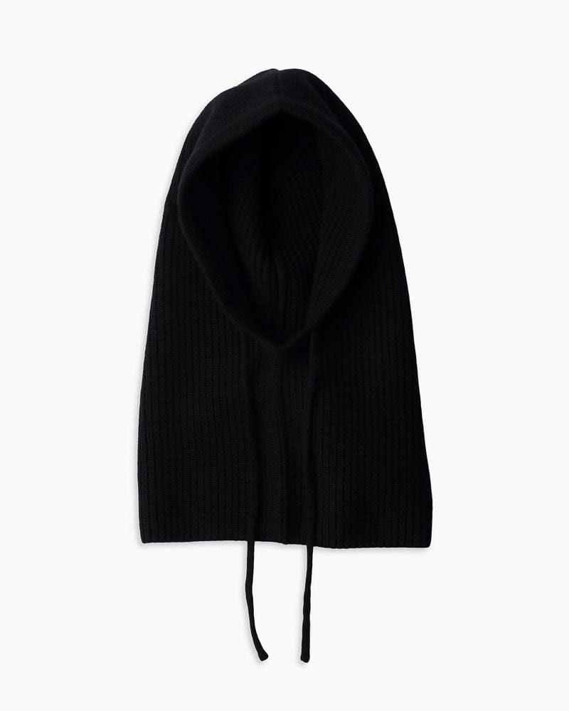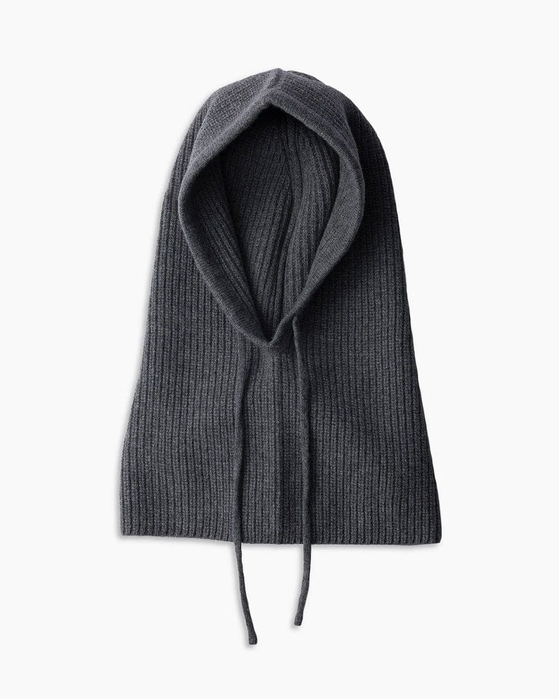 Elevate your cold-weather accessories with this luxurious knit hood, expertly crafted from soft cashmere. The minimalist design features a ribbed texture and drawstrings, offering both warmth.