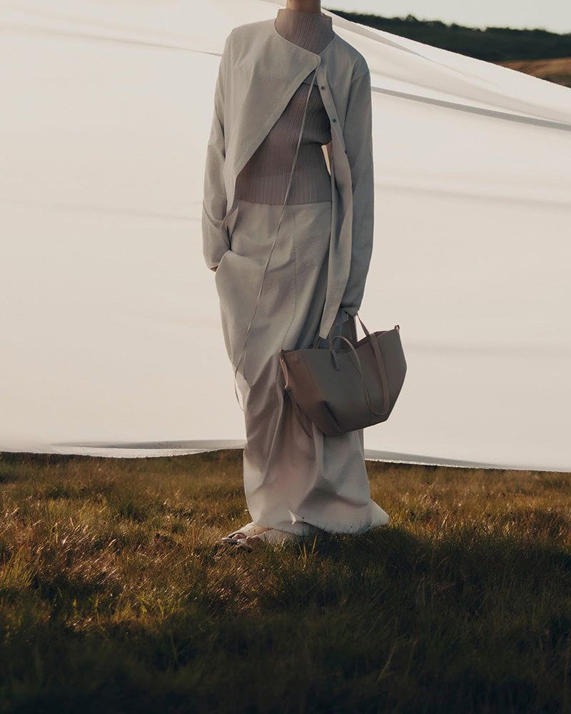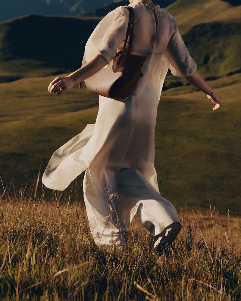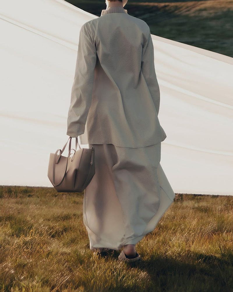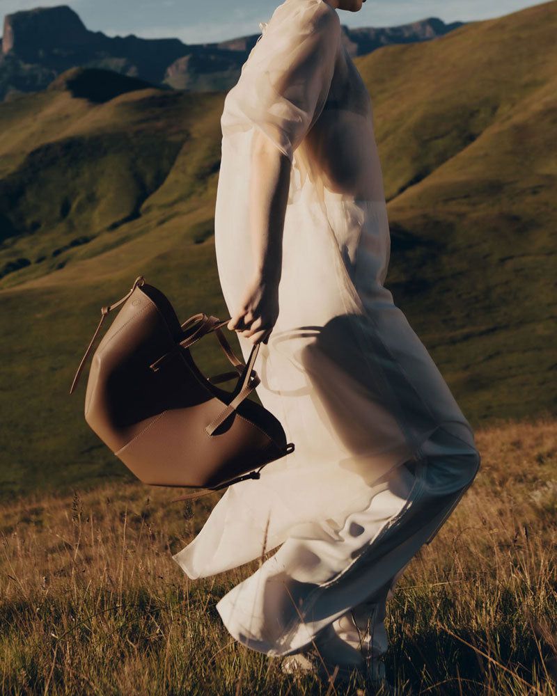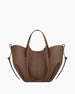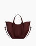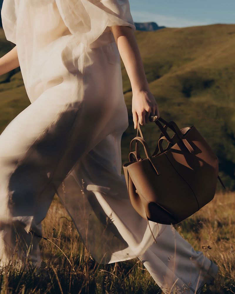 Crafted by skilled artisans in Italy, this sculptured compact tote highlights waves, folds, and curves for a versatile silhouette. Designed to be styled in two ways—basket-style with open sides or closed into a flower-like form with tucked sides and crossed straps—it’s a refined everyday companion.