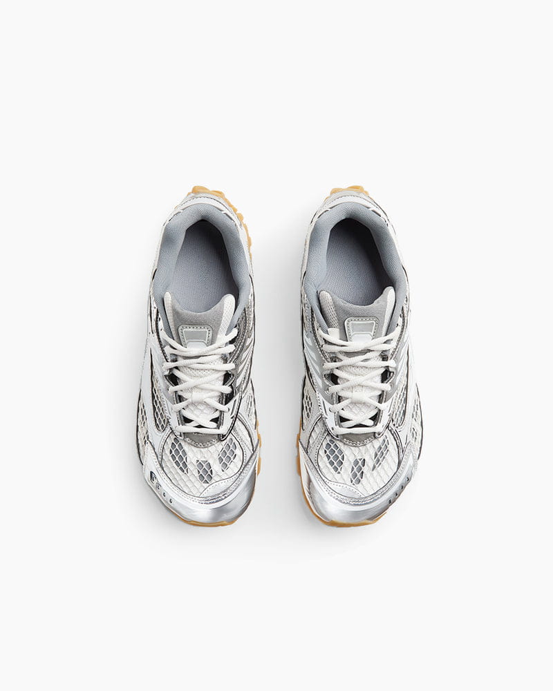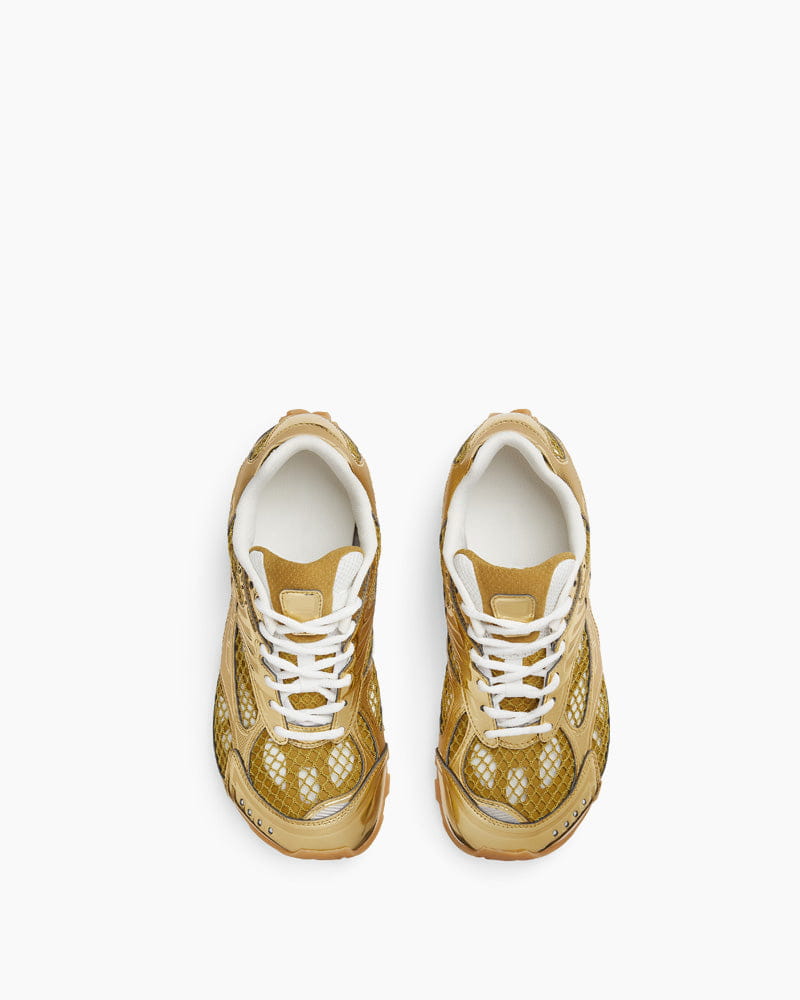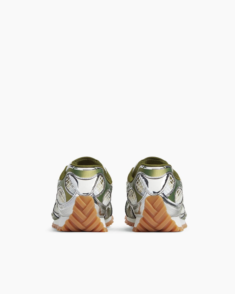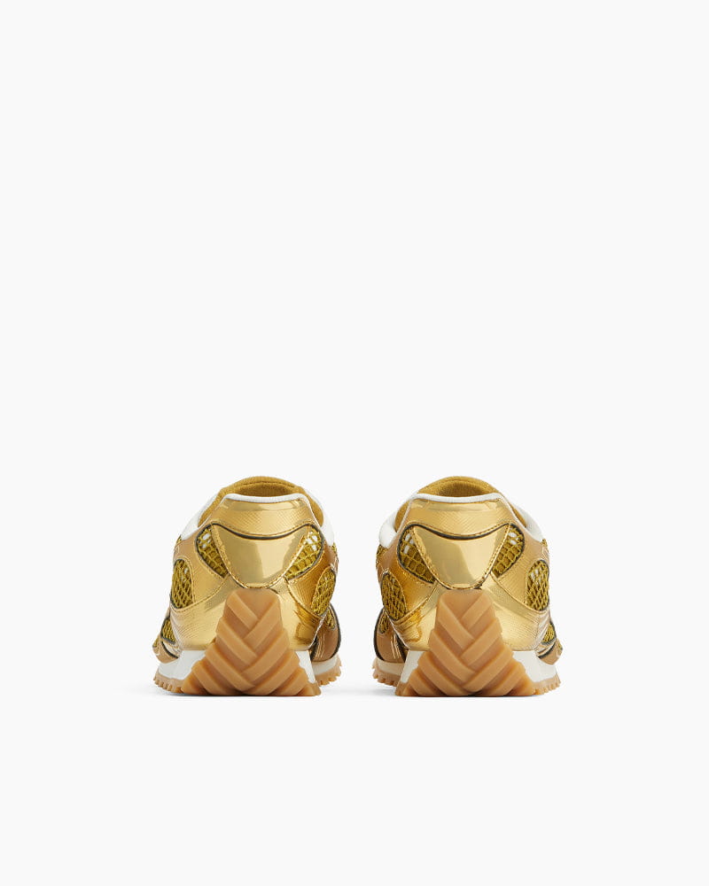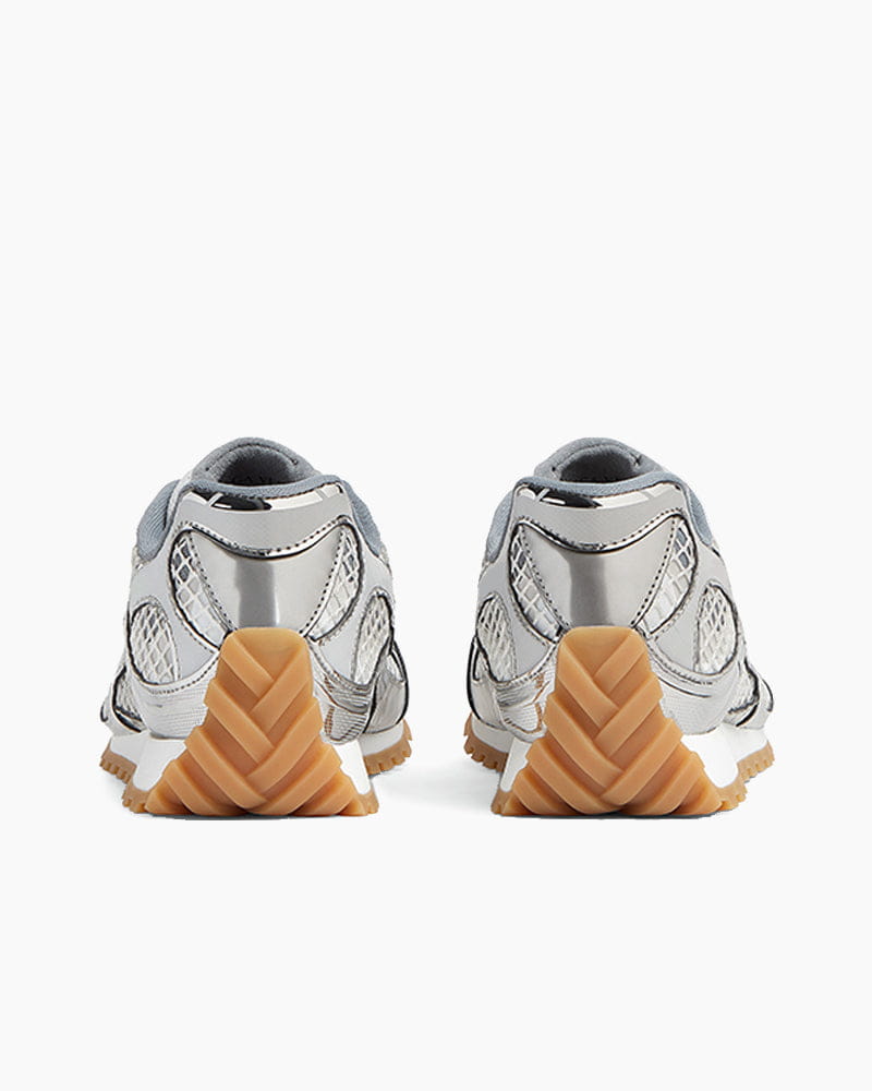 These runner sneakers combine high-performance aesthetics with luxury craftsmanship, defined by a lightweight Synthetic leather and mesh construction. The design features a striking colorway with a metallic finish, offering a futuristic look that stands out. Fitted with a Mesh lining and a durable rubber outsole, this lace-up style ensures breathability and traction for everyday comfort.
