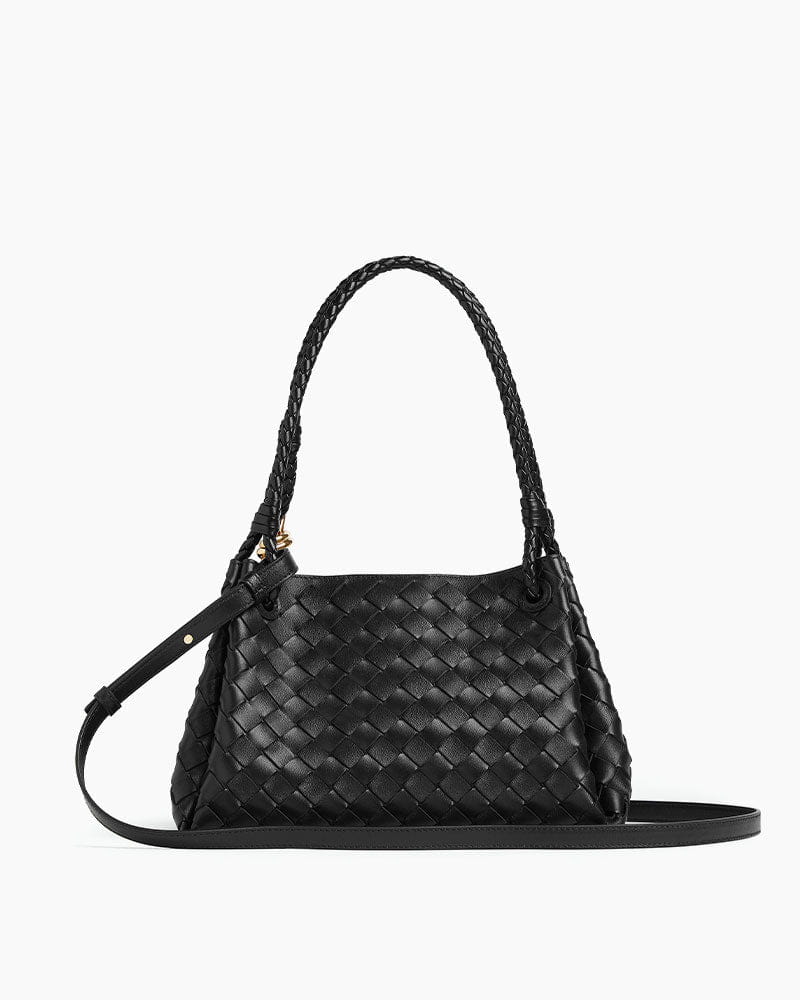 Medium Intrecciato Leather Shoulder Bag with Metal Knot Detail