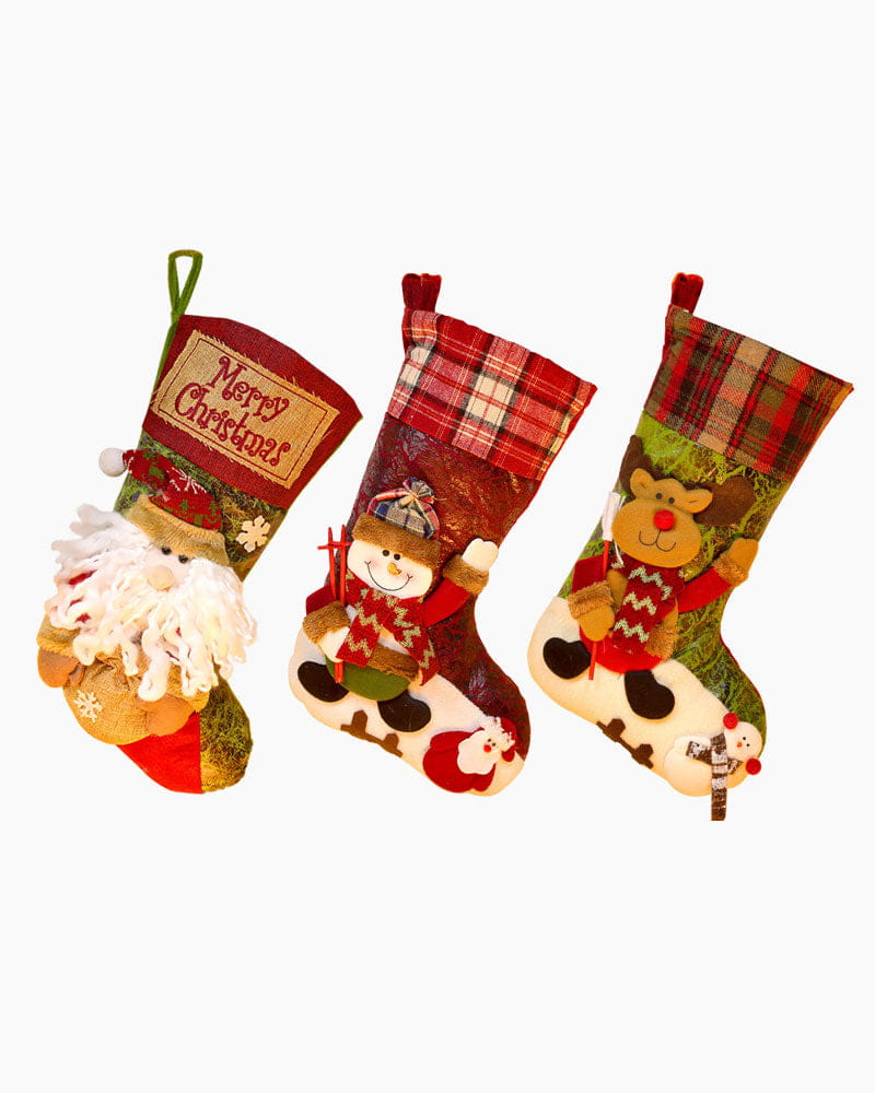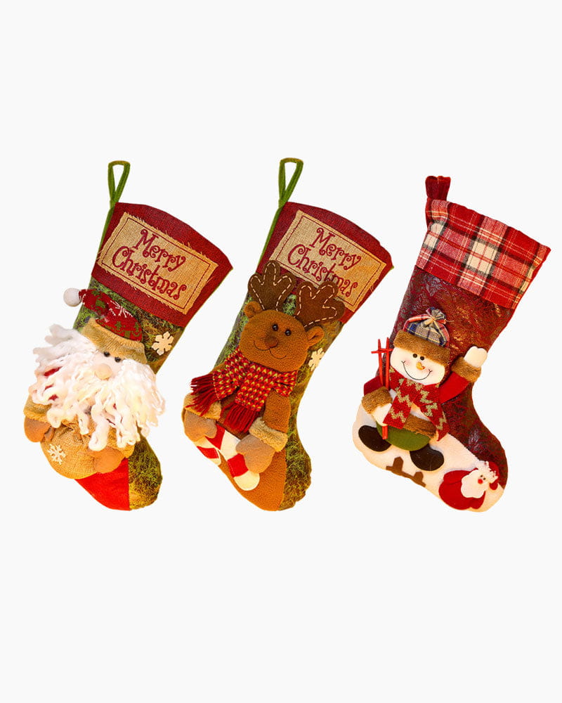 Add a festive touch to your holiday decor with this classic Christmas stocking gift bag. Crafted from durable burlap, it brings a cozy rustic charm to your seasonal celebrations—perfect for filling with small gifts, candies, or surprises for loved ones.