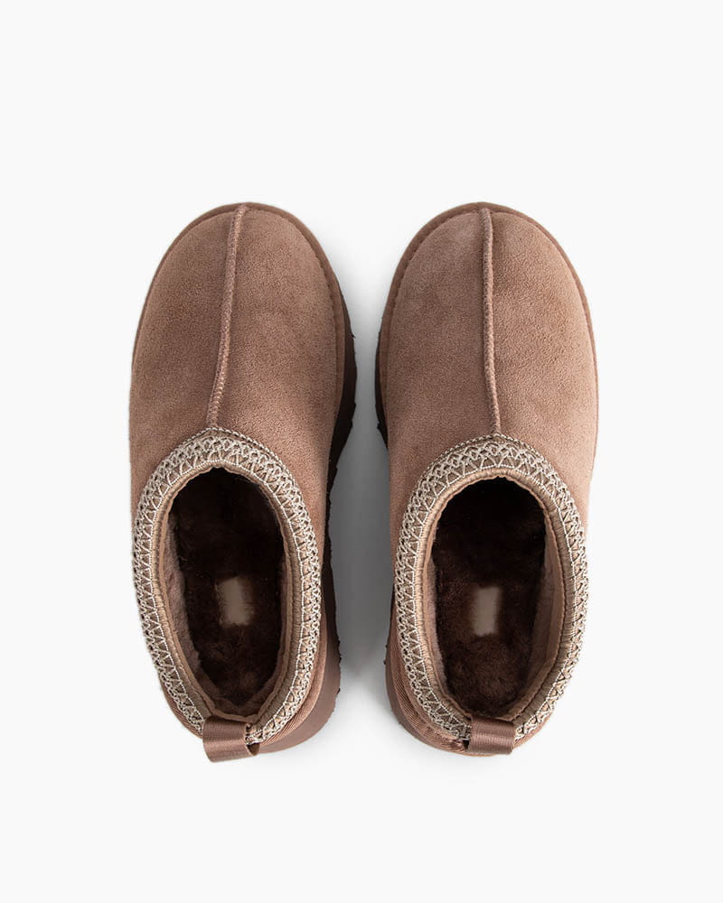 A luxe slip-on mule that delivers both style and warmth. The Women’s Classic Cozy Tazz features a genuine leather upper and is fully lined with real sheepskin or lambskin fur—including the insole. The fur may be sourced from Australia, Ireland, the UK, or the USA, and is dyed and processed for durability and consistent coloring.