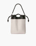Blending functional design with a soft, tactile aesthetic, this vertical tote features a relaxed silhouette defined by signature side knot drawstrings. Crafted from incredibly smooth mellow nappa lambskin in a sophisticated bi-color palette, it is accented by a tonal "donut" chain detail that adds a modern, jewelry-inspired touch to the versatile structure.