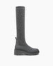 The boot is a versatile, knee-high wedge boot designed for travel and daily wear, offering a blend of modern comfort technology and adaptable styling. Its standout feature is the "two looks in one" design, where the stretchy shaft can be worn sleekly against the leg or scrunched at the ankle for a more relaxed aesthetic.