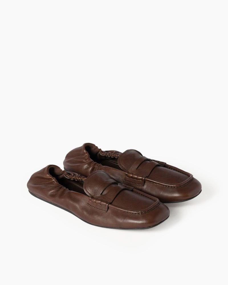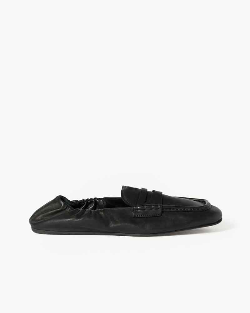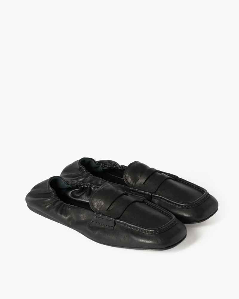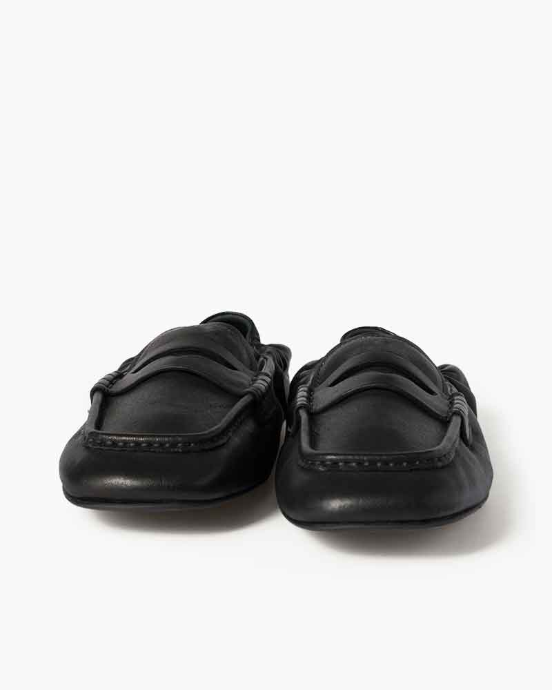 Refined yet relaxed, these loafers reinterpret vintage charm through soft nappa leather and graceful, minimalist lines. Accented with a subtle gold-embossed logo detail, they balance timeless sophistication with modern versatility—perfect from weekday tailoring to casual denim.