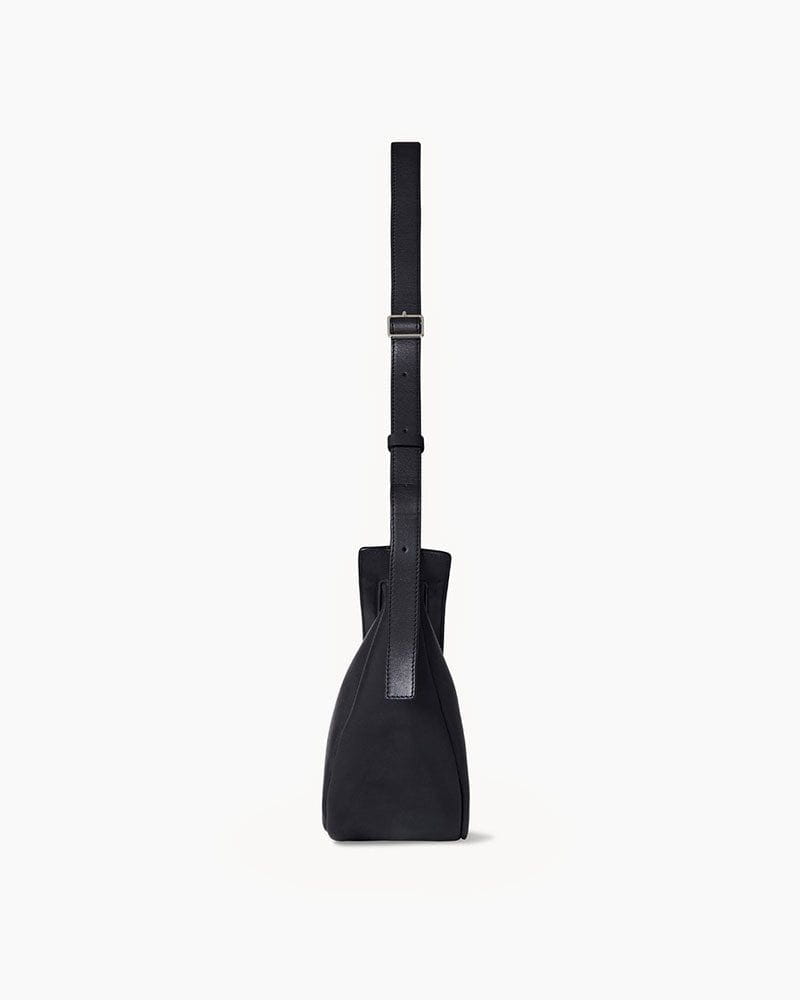 Minimalist yet refined, this curved crossbody bag is crafted in smooth calfskin leather. Finished with an adjustable strap and secure zipper closure, it combines sleek design with everyday versatility.