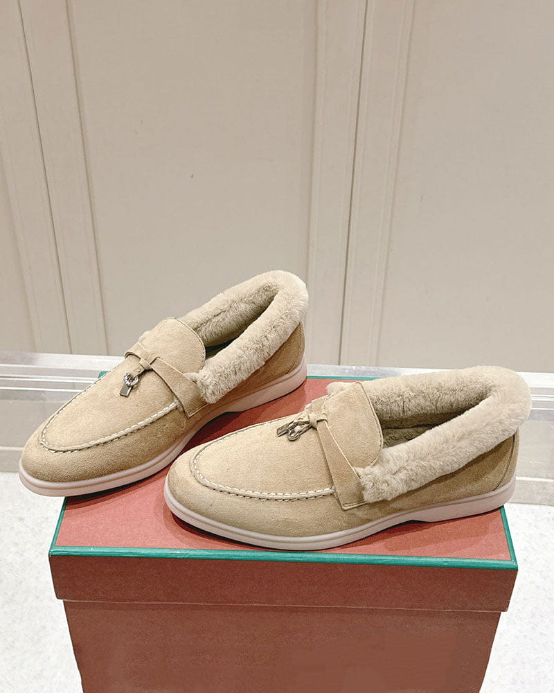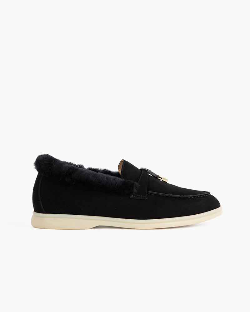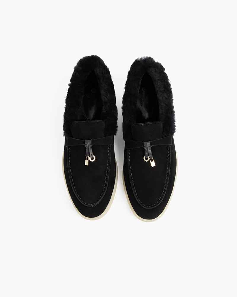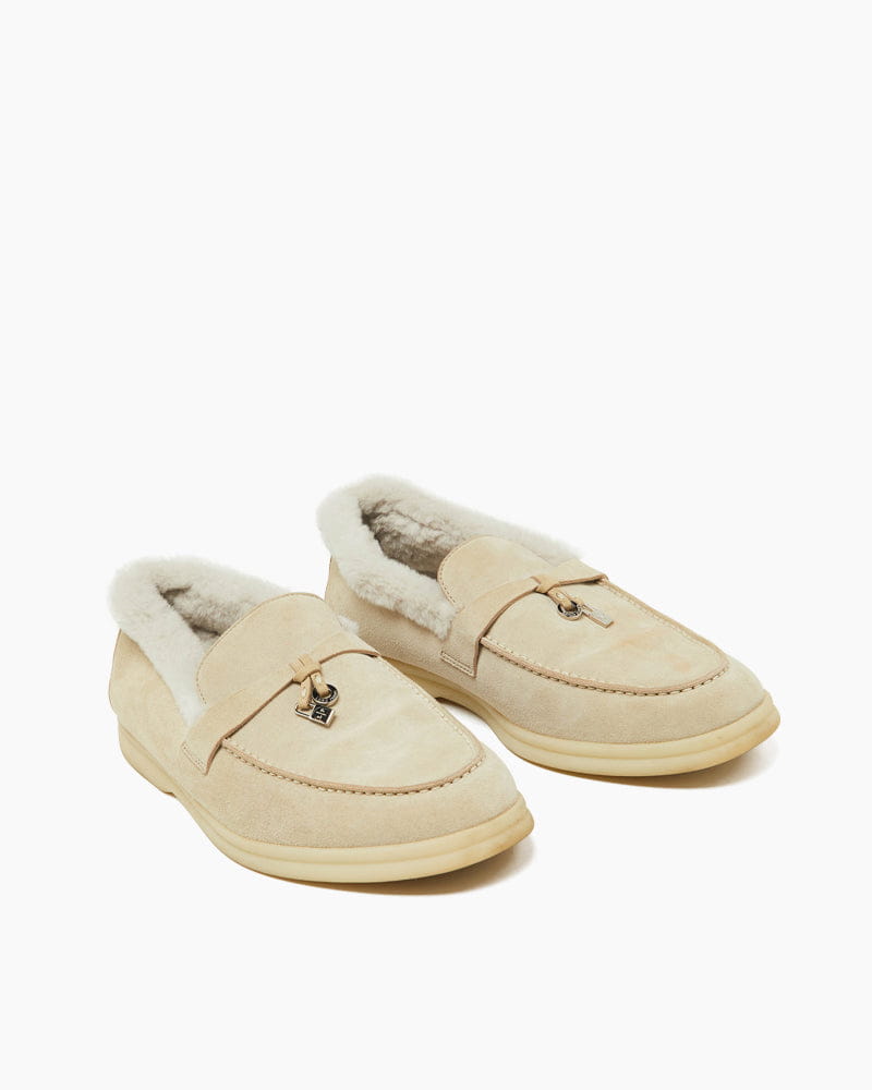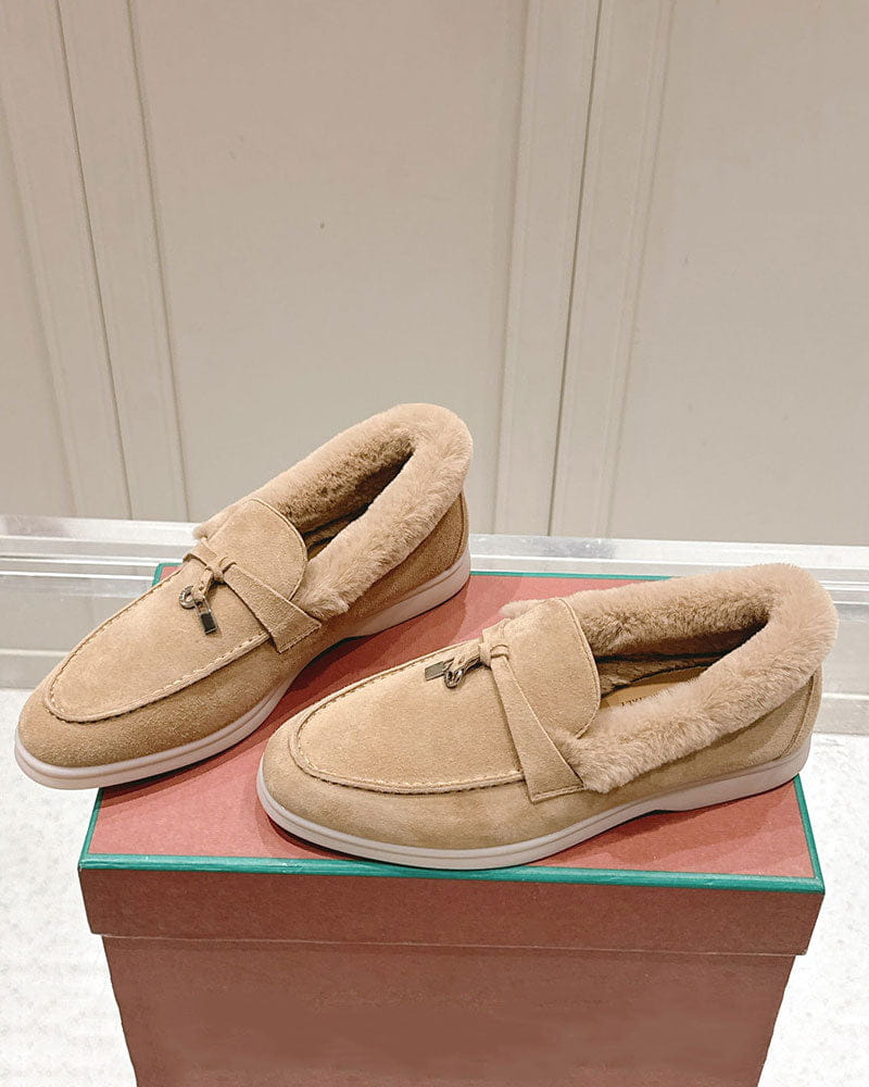 Designed for effortless comfort and refined everyday wear, these slip-on loafers combine plush shearling with smooth suede for a soft, luxurious feel. Lightweight yet durable, they offer cozy warmth and a relaxed profile suited for both indoor and outdoor use.