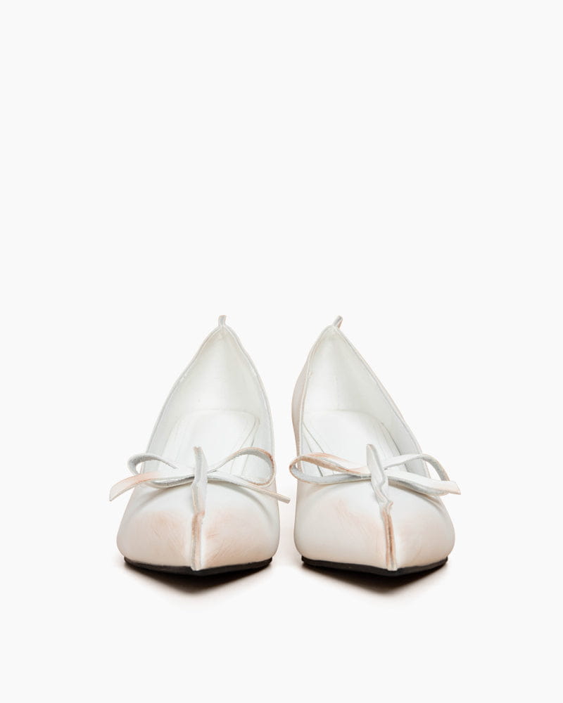 Strong architectural lines meet feminine energy in this modern reinterpretation of the classic pump. Crafted from premium microfiber leather with a subtle antiqued texture, this design embraces raw elegance — celebrating imperfection as an art form. The pointed-toe silhouette and exposed stitching create a bold yet refined statement, while the kitten heel completes the look with effortless sophistication.
