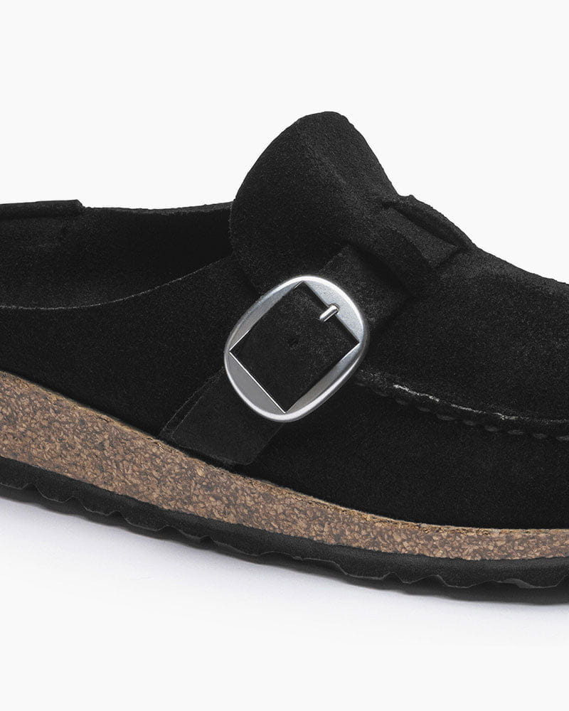 Women's Casual Suede Mules with Adjustable Buckle Strap