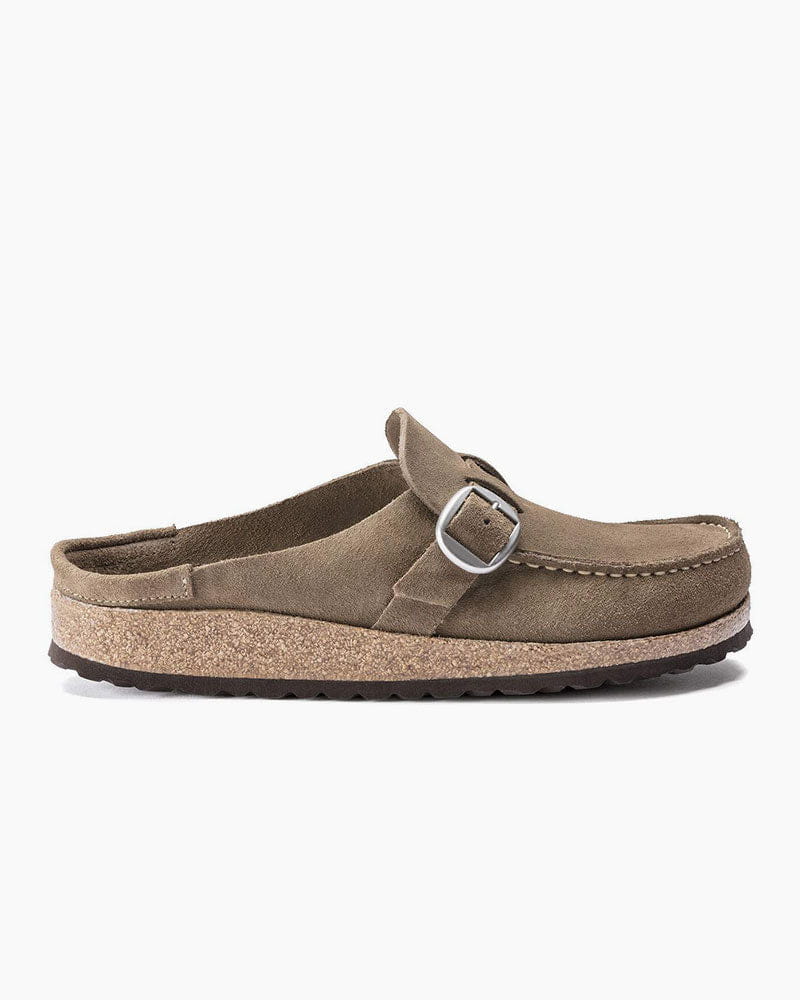 These moccasin-style clogs offer a sophisticated aesthetic with a relaxed, versatile appeal suitable for both work and the weekend. Combining refined moccasin construction with a velvety texture, the design prioritizes lasting comfort and support through a specialized contoured footbed that adapts to the wearer's foot over time.