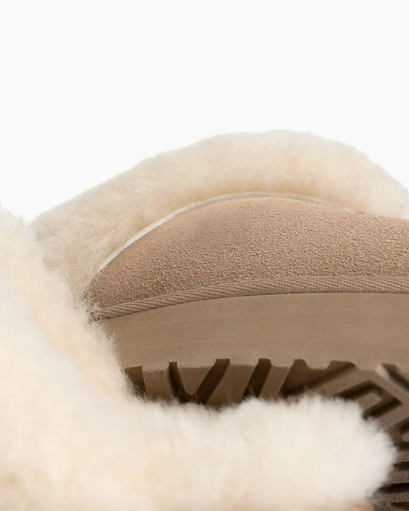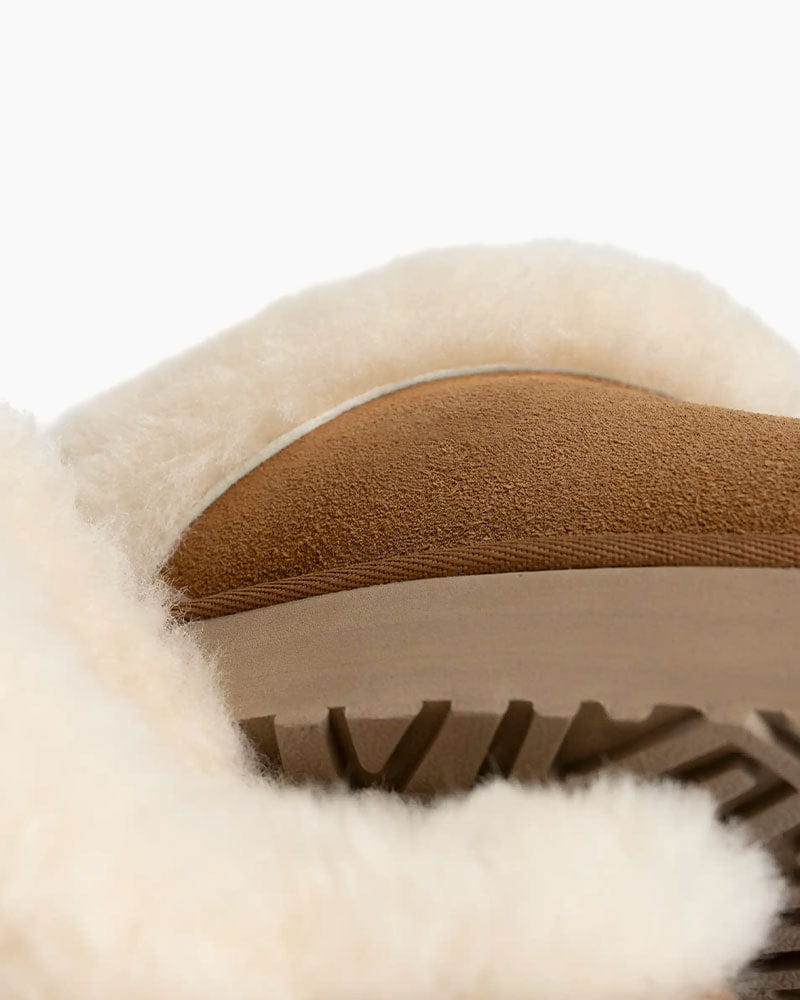 Upper: Suede with a sheepskin collar for a soft, plush feel