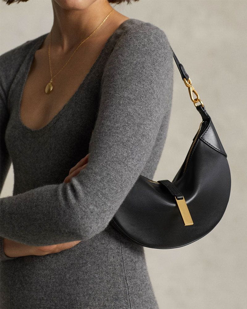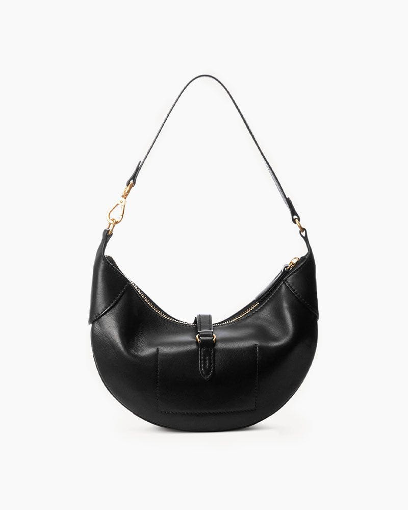 A sculpted mini shoulder bag crafted in Italian leather, designed with a dual-compartment saddle silhouette. Versatile and elegant, it seamlessly transforms from a shoulder bag into a crescent-shaped clutch, balancing equestrian inspiration with modern sophistication.